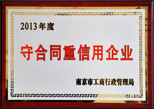 南京完美平台官网登录集团荣获2013年度南京市“守合同重信用”企业称号