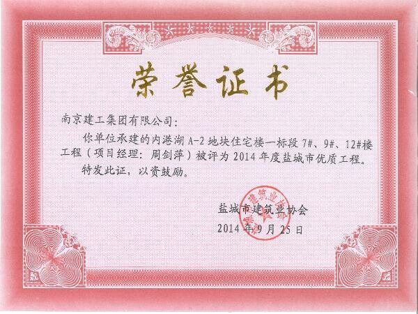 南京完美平台官网登录集团六公司内港湖住宅楼项目喜获盐城市优质工程近日,由南京完美平台官网登录集团六公司承建的内港湖A-2地块住宅楼一标段7#、9#、12#楼被评为2014年度盐城市优质工程。