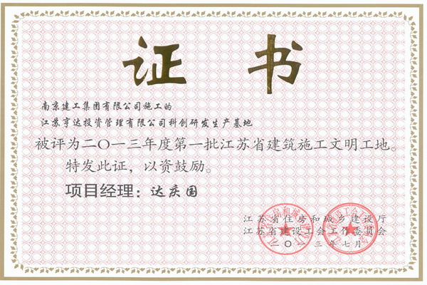 南京完美平台官网登录集团六公司两个工程项目喜获“省级文明工地” 近日,由南京完美平台官网登录集团六公司承建的科创研发生产基地和建邺区20号地块危旧房改造两个工程项目喜获“2013年度第一批江苏省建筑施工文明工地”。 科创研发生产基地工程为六合经济开发区科技发展有限公司办公楼,位于南京市六合区龙池街道办事处内,建筑总面积7324.09平方米。建邺区20号地块危旧房改造工程位于建邺区集庆门大街西延与华山路交叉口东南角,包括人防地下室、主楼01栋、主楼02栋、商业房A栋、商业房B栋和配电房几部分,总建筑面积40000平方米。自工程开工以来,项目部始终坚持将安全文明施工管理、质量控制、进度管理放在首位,严格按照文明工地标准实施把控,切实做好施工现场安全文明管理,为确保工程项目顺利推进打下了良好的基础。