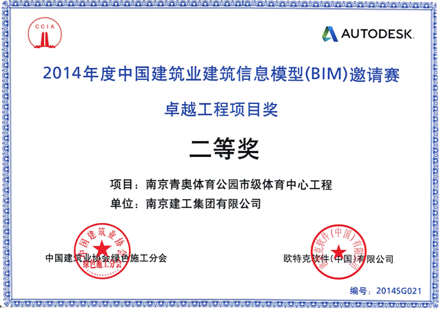 完美平台官网登录南京青奥体育公园市级体育中心工程项目获得“卓越BIM 工程项目奖”二等奖2014年12月由中国建筑业协会指导、中国建筑业协会绿色施工分会主办的 “2014年度中国建筑业建筑信息模型(BIM)邀请赛”在天津举办颁奖典礼。现场隆重揭晓了“最佳BIM企业奖”、“卓越BIM 工程项目奖”、以及“BIM拓展应用奖(单项)”获奖名单。完美平台官网登录南京青奥体育公园市级体育中心工程项目获得“卓越BIM 工程项目奖”二等奖,副总工程师代表集团接受颁奖。