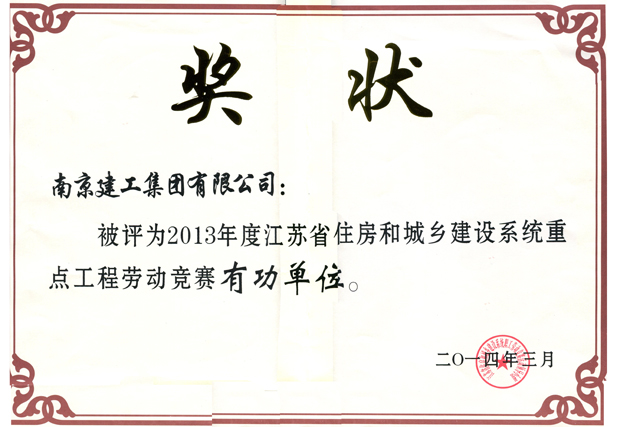 南京完美平台官网登录集团被评为2013年度全省住建系统重点工程劳动竞赛有功单位
