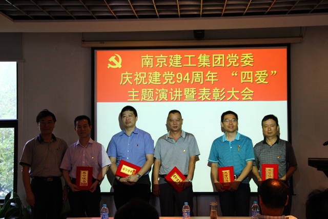 集团党委举行庆祝建党94周年“四爱”演讲活动暨表彰大会 7月10日下午,集团党委在会议室隆重举行庆祝建党94周年“四爱”演讲活动暨表彰大会。本次会议由集团党委副书记徐灯英主持,集团总裁陈勤斌、执行总裁肖超斌、各基层党组织受表彰对象、党员代表共70余人参加了会议。 大会分为表彰先进和“四爱”演讲两个部分。会上,与会的集团领导分别为荣获两级党委表彰的坚强战斗堡垒、优秀共产党员、先进党务工作者颁奖,对荣获2014-2015年度宣传工作先进单位和优秀通讯员进行表彰,并为 “党员先锋岗”“党员示范岗”进行表彰授牌。 来自集团各部门、分公司、项目部的17名党员现场进行以爱党、爱国、爱企、爱家为主题的“四爱”演讲活动。党员同志们以“党在我心中”、“我爱企业如爱家”等内容为主题,饱含深情地讲述了对党、对国家的朴实情怀以及在各自的岗位上,懂得知足,懂得进取,爱岗敬业,无私奉献的精神,博得现场阵阵掌声。 最后,全体党员重温入党誓词,面对党旗宣誓,促进党员们时刻铭记自己是一名光荣的中国共产党党员和肩负的神圣职责。