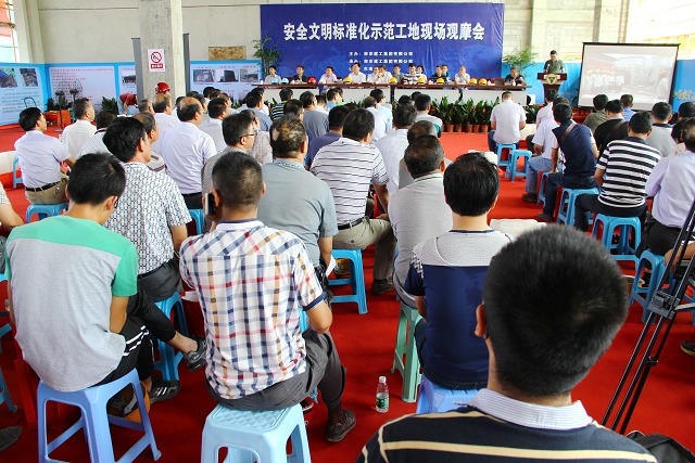 集团召开安全标准化施工现场观摩会活动前,与会人员参观了项目施工现场,对临时设施、安全防护、物料堆放、文明施工等细节进行观摩。集团领导重申了举办现场观摩交流会的目的和意义。市、区两级行政主管部门领导对集团的安全标准化建设工作给予了充分肯定,同时也提出了一些建议和要求。