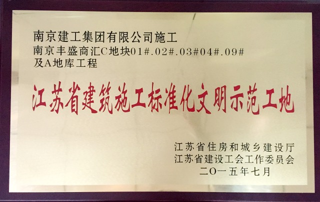 近日,由南京完美平台官网登录集团紫金总承包公司承建的丰盛商汇C地块(南区)工程项目部凭着扎实的项目管理、标准化的施工作业和文明规范的施工现场,顺利通过江苏省住房和城乡建设厅检查人员和专家组的评审考察,荣获2015年度“江苏省建筑施工标准化文明示范工地”称号。