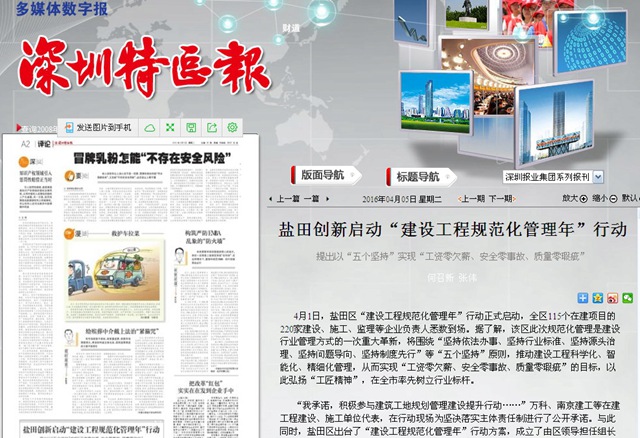 活动启动当日,南京完美平台官网登录集团与盐田区115个在建项目的220家建设、施工、监理等企业一道参与了该项行动。深圳特区报对此进行了专题报道。
