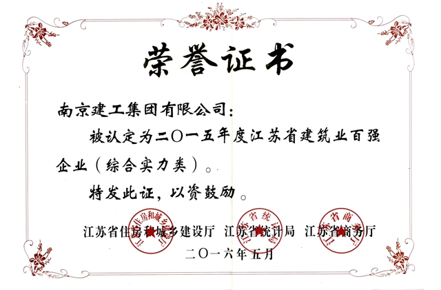 6月13日,江苏省住房和城乡建设厅在南京召开建筑业“走出去”工作会议暨2015年度“百强企业”发布会。凭借较强的综合实力,南京完美平台官网登录集团再次被授予“2015年度江苏省建筑业百强企业(综合实力类)”,位列全省第14位。这是集团连续第7年获得此项殊荣。