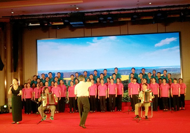 作为会议的开场节目,集团合唱队高歌一曲《我的祖国》,博得全体与会者的热烈掌声,受到会议主办方—铁心桥街道工委的高度赞扬。