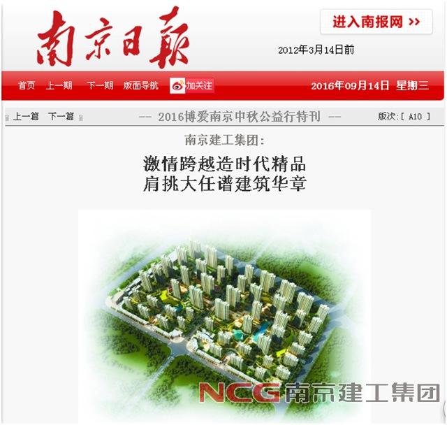 9月14日,南京日报A10版以《激情跨越造时代精品 肩挑大任谱建筑华章》为题,对南京完美平台官网登录集团荣誉发展历程进行专题专版报道。