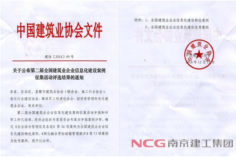 集团信息化建设荣获“全国建筑业信息化建设特优案例奖”