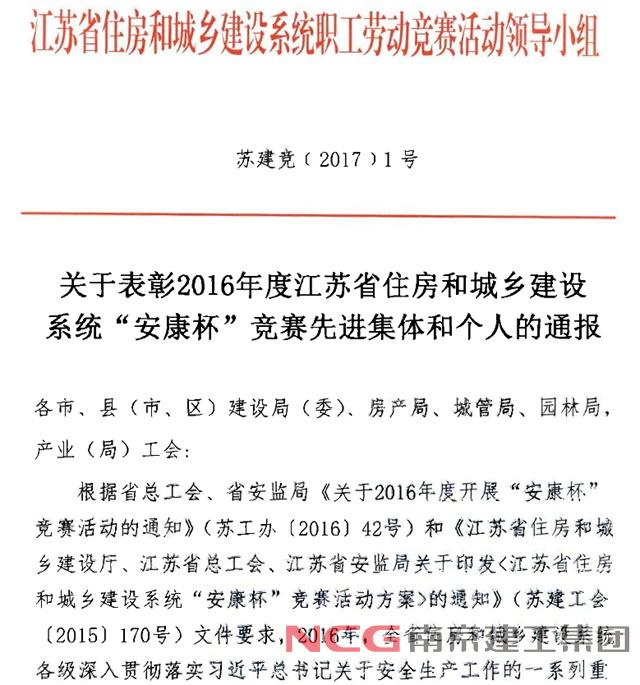 日前,在省住建厅“安康杯”竞赛表彰活动中,集团紫金总包公司丰盛商汇C地块项目部荣获“2016年度江苏省住房和城乡建设系统‘安康杯’竞赛优胜班组”荣誉称号。 2016年,集团按照南京市建委和省住建厅《关于开展2016年度全省住房和城乡建设系统“安康杯”竞赛活动的通知》要求,成立安康杯竞赛领导小组,由集团工会、安全部牵头并具体负责,各部门各司其职,各总包公司、项目部扎实推进“安康杯”竞赛工作,取得了显著成效。 |