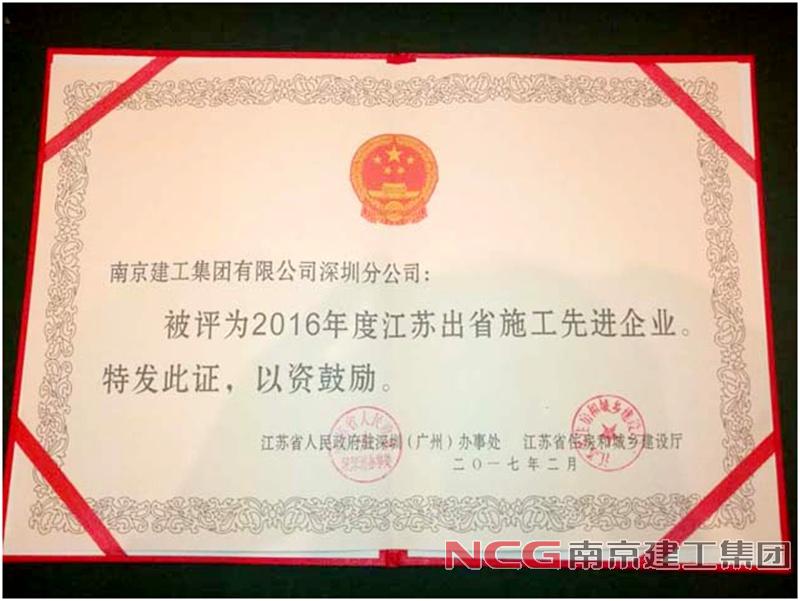会上,授予南京完美平台官网登录集团深圳分公司2016年度江苏出省施工先进企业称号。 |